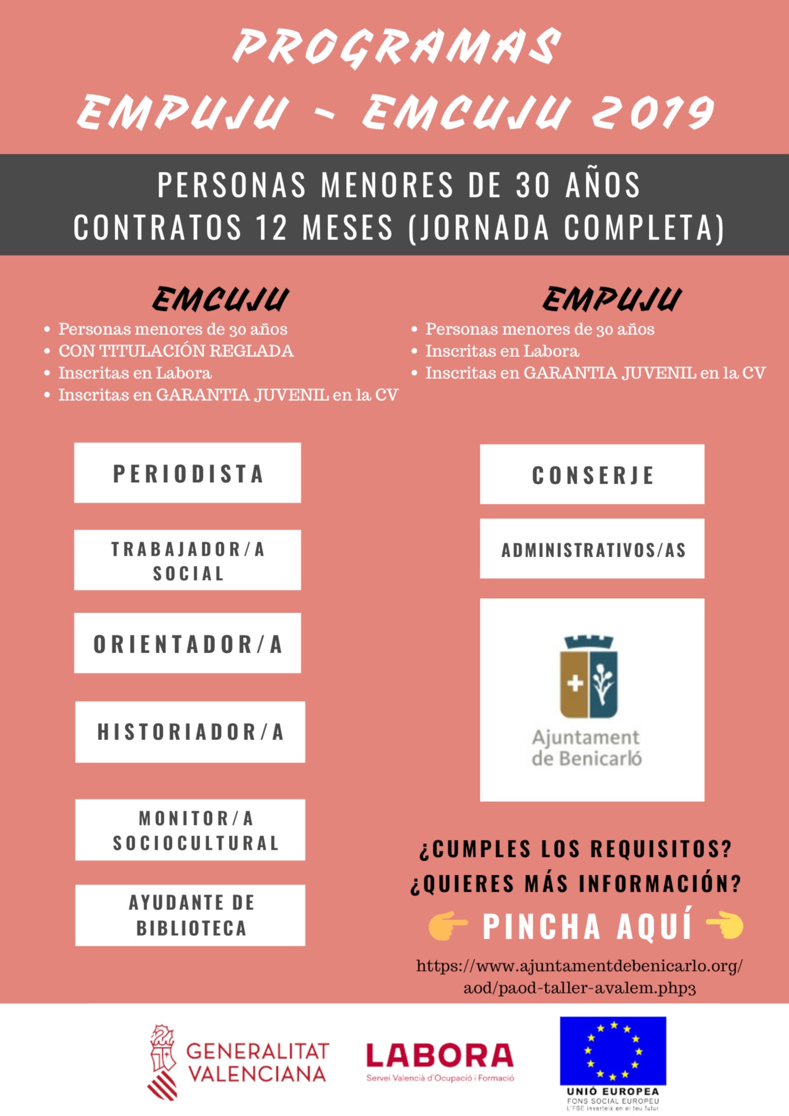El Ayuntamiento de Benicarló reafirma su compromiso con la creación de ocupación y contratará a 17 jóvenes menores de 30 años que prestarán servicios en diferentes departamentos municipales a lo largo de un año. La iniciativa es gracias al programa Avalamos Jóvenes Plus de la Generalitat Valenciana, que destinará alrededor de 255.000 euros en la ciudad.