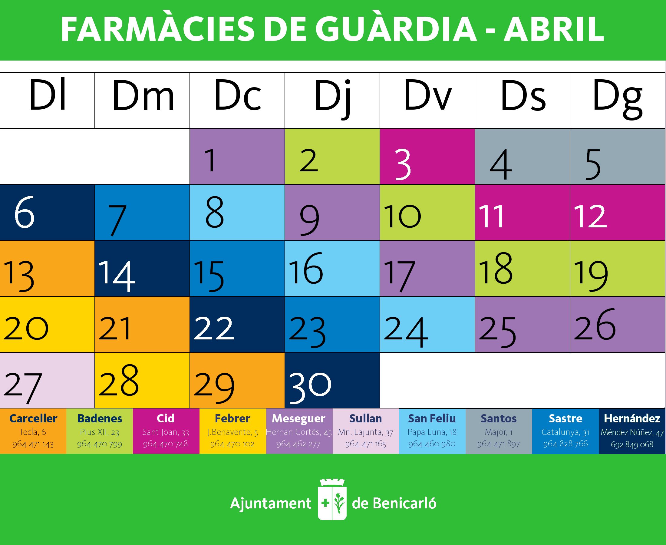 Farmacias de guardia para el mes de abril