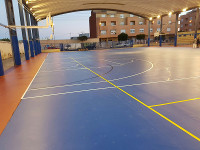 El cambio del pavimento se ha aprovechado también para trazar nuevas pistas reglamentarias de 20x40m que discurren transversalmente. La nueva ordenación del trazado de la pista permitirá la práctica del fútbol sala y el balonmano y próximamente se habilitarán porterías para la práctica de los dos deportes.