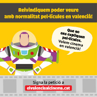 Con el lema «Que no nos expliquen películas», la Plataforma por la Lengua ha puesto en marcha una campaña para que el público pueda decidir en qué lengua quiere ver cine. La campaña, que cuenta con la colaboración de la Conselleria de Educación, reclama poder escoger películas en versión en valenciano (dobladas, subtituladas o en versión original) en igualdad de condiciones respecto a las que se proyectan en versión española.
