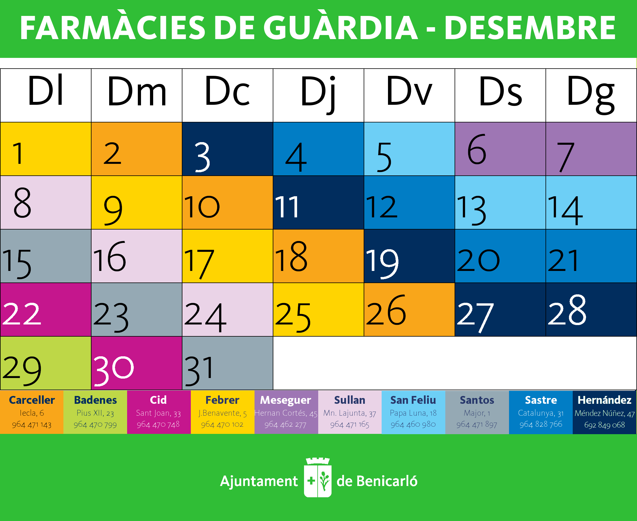 Farmàcies de guàrdia per al mes de desembre