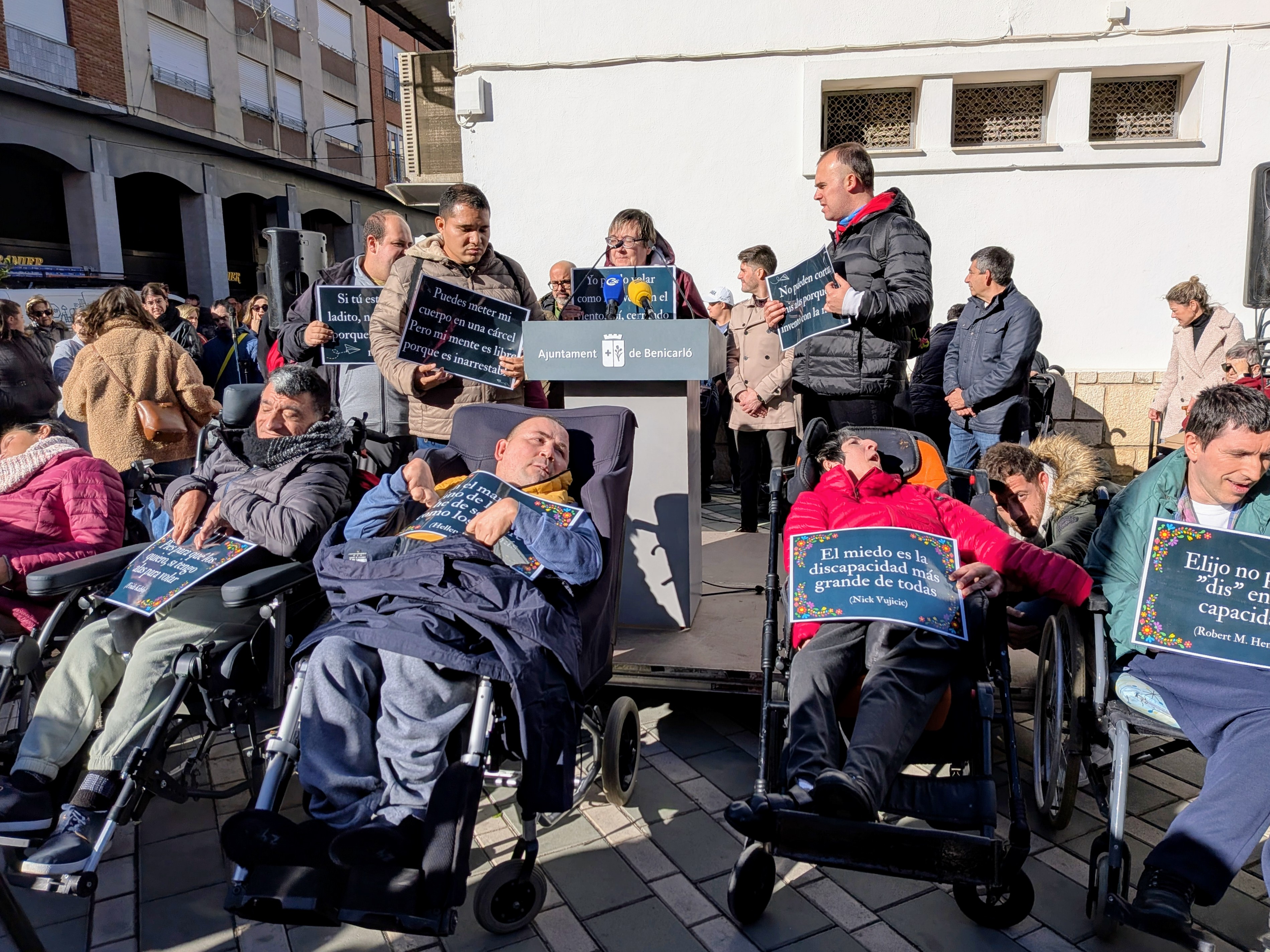 El acto ha contado con la participación activa de los numerosos colectivos y entidades de Benicarló que trabajan con personas con discapacidad, desde el Centro Ocupacional IVASS El Maestrat, la Residencia y Centro de Día El Collet y la Residencia Sant Francesc hasta las asociaciones Els Fenòmens, Cocemfe, Avancem, Ateneu Maestrat, Afibama, Afanias y ACEMYF, que han reivindicado aspectos como la autonomía y la autogestión de las personas con discapacidad, la visibilidad de las grandes discapacitados, y la salud, tanto física como mental.
