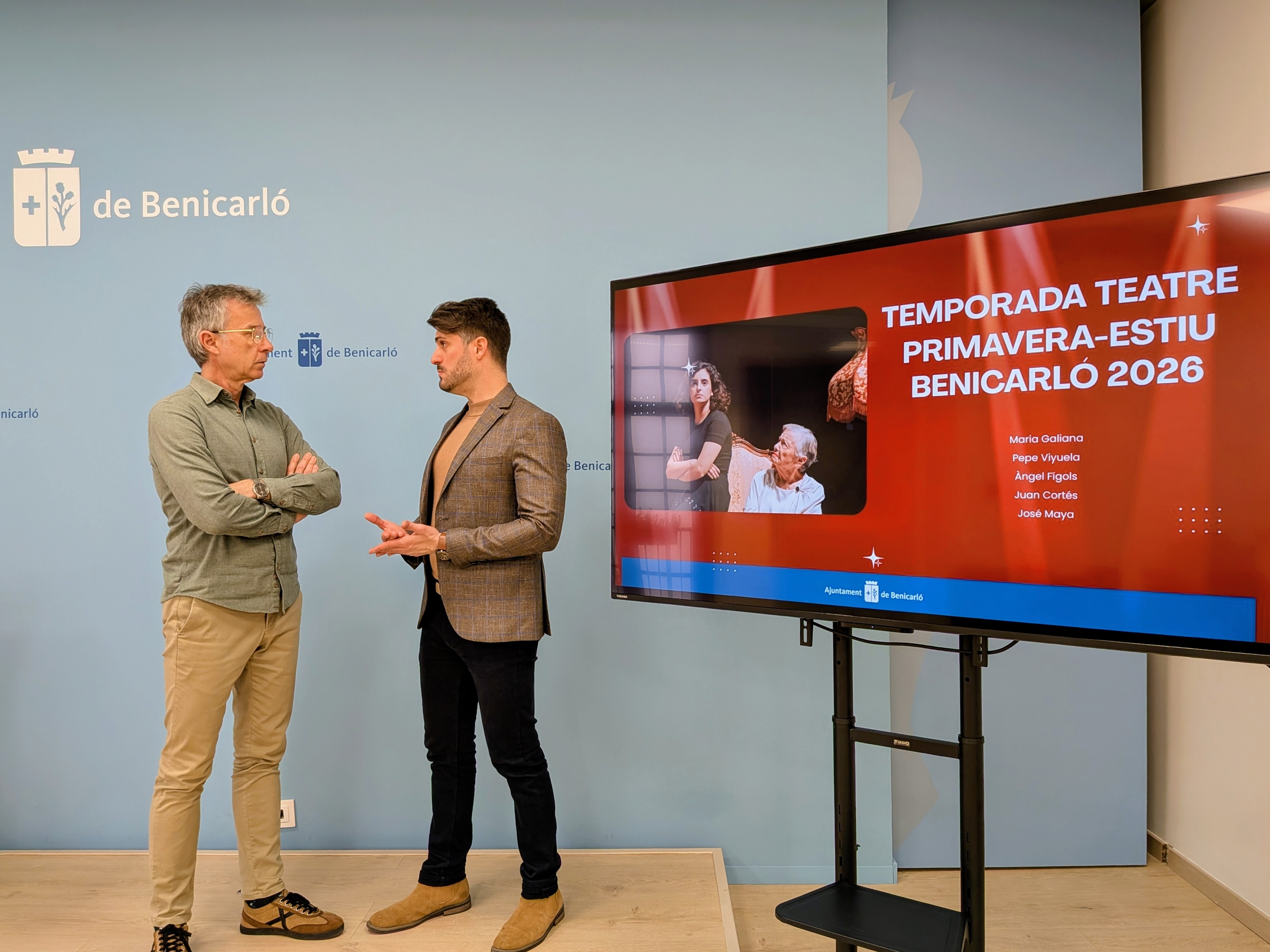 El regidor d'Arts Escèniques, Carlos Delshorts, i el tècnic de Cultura, Rafa Sánchez, han presentat avui la programació del Cicle de Teatre de Primavera 2026, una proposta cultural que s'estendrà de març a juliol i que inclou una àmplia oferta de teatre, música i dansa.