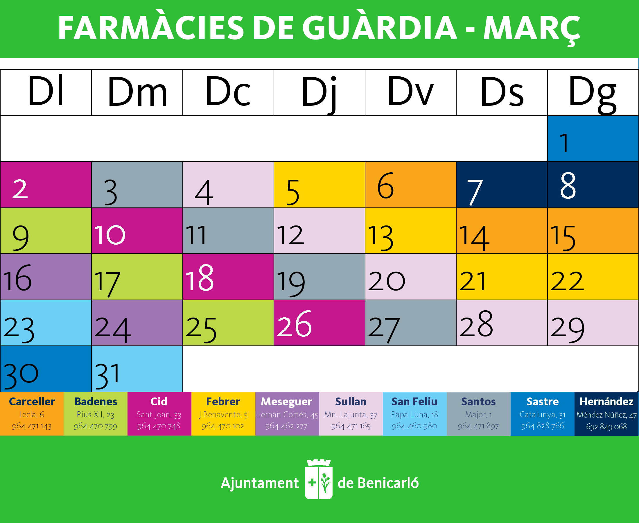 Farmàcies de guàrdia per al mes de març