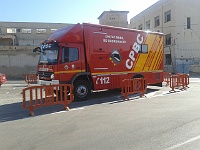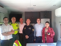 Responsables de la Policía Local y del Consorcio de Bomberos han visitado la Unidad Móvil de Coordinación, el vehículo donde se reunirá el Tabla de Mando Avanzado en caso de emergencia a la empresa IFF. El vehículo está dotado de la última tecnología.