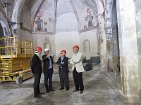 Els treballs de restauració de la capella del Convent de Sant Francesc s'allargaran durant vuit mesos i serviran per recuperar l'esplendor de l'edifici. Els directors d'IFF i Ashland, acompanyats de l'alcalde, han visitat les obres.