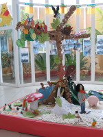 Los usuarios y trabajadores del centro han construido un original monumento a base de productos reciclados y han reflejado, con buena dosis de humor y de crítica, el día a día del centro a través de las cuatro estaciones del año. Hay que destacar que este tipo de actividades tiene una importancia terapéutica esencial para el desarrollo psicomotriz de los residentes, que participan activamente de las actividades de elaboración de la falla.