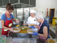 El Comedor Social ha empezado el curso con un equipo de 80 voluntarios que, en cinco turnos de lunes a viernes, se distribuyen para que el servicio funcione a pleno rendimiento. Miembros de Caritas, Amay y del Club de la Tercera Edad, así como muchos particulares, forman parte de este equipo renovado en un 30% respecto al año pasado que elabora cada día un menú diferente para las 131 personas que actualmente acuden al Comedor Social (21 usuarios que comen en las instalaciones de la antigua Escuela de la Mar Irta y 110 miembros de 25 familias que cada día recogen la comida allí mismo).