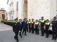 La plaza de San Bartolomé ha sido el marco en que el alcalde, Marcelino Domingo, el concejal de Seguridad, Marcos Marzal, y el jefe de la Policía Local, Agustín Parra, han pasado revista a los más de 50 agentes que forman parte del cuerpo de la Policía Local de Benicarló, además del perro especialmente adiestrado para la detección de drogas. El acto ya es una tradición que tiene lugar cada 29 de septiembre, dentro de la celebración de la fiesta de San Miguel, patrón de la Policía Local.