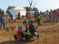 Famílies senceres, persones grans, joves, gent de totes les edats van participar en la plantada, que van coordinar els experts en agricultura ecològica Mariano Bueno i Jesús Arnau. Al final de la jornada es va escampar una capa de triturat per tota la parcel·la que servirà per a minimitzar al màxim la necessitat de reg i de manteniment.