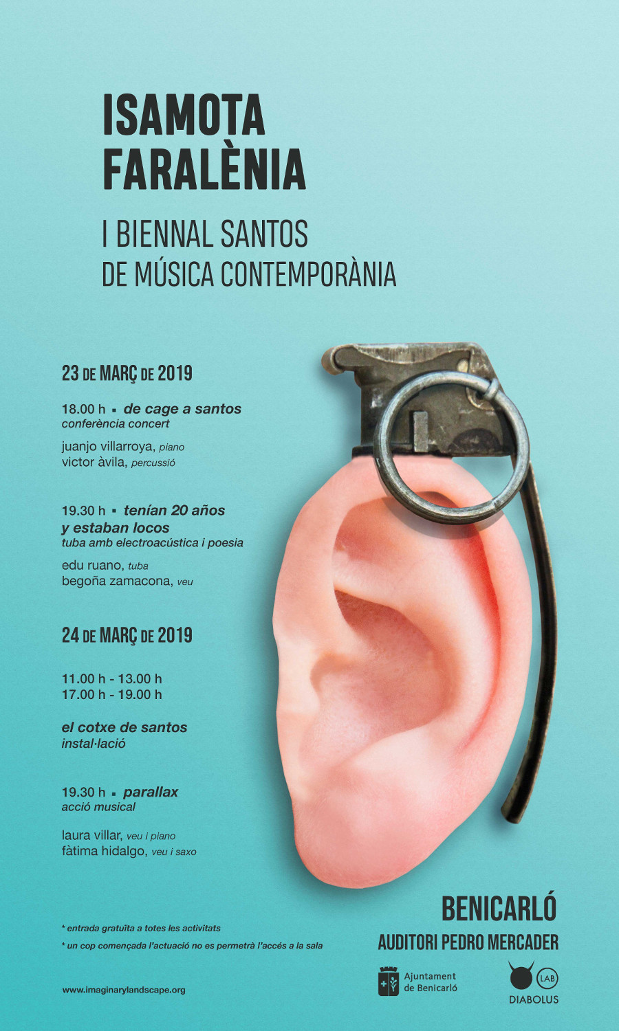 La Regidoria de Cultura, amb la col·laboració de l'associació cultural Diabolus, ha presentat la primera edició d'Isamota Faralènia, la primera Biennal Santos de Música Contemporània que pretén homenatjar i reivindicar la figura del genial compositor vinarossenc. Els dies 23 i 24 de març, s'han programat un seguit d'activitats a l'Auditori Pedro Mercader que abastaran disciplines i llenguatges artístics molt diferents i que inclouran la possibilitat d'entrar al cotxe de Carles Santos (on ell componia i escoltava música), que estarà ubicat a l'escenari de l'Auditori. A dins, el públic podrà escoltar l'última peça que va gravar en estudi, The proposal, que va ser un treball conjunt amb l'artista Amalia Ulman per a la Berlin Biennale d'art contemporani de 2016.