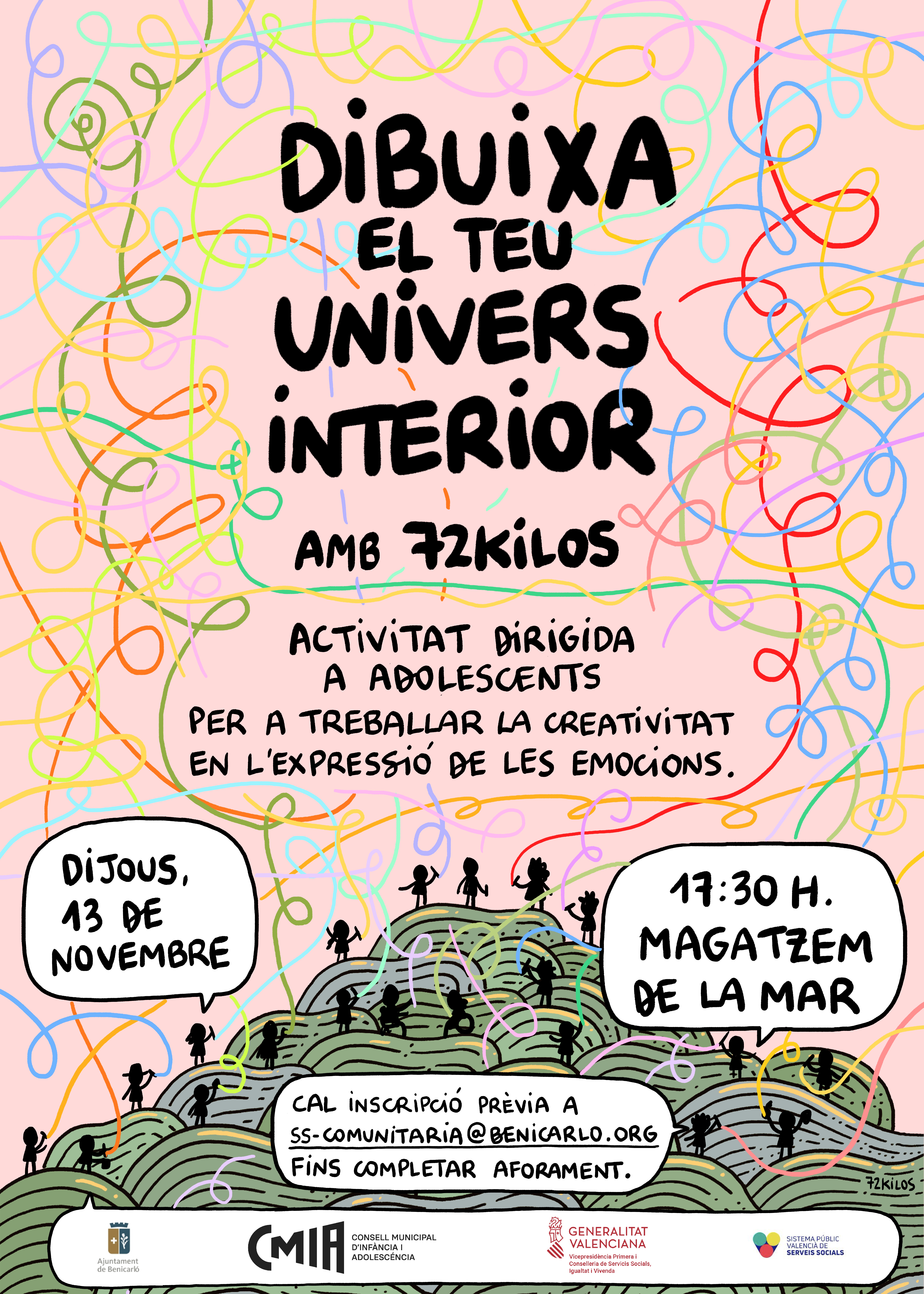 El jueves 13 de noviembre, los jóvenes serán los protagonistas con el taller 'Dibuja tu universo interior' a cargo del reconocido dibujante 72 Kilos, con 2,4 millones de seguidores en Instagram, que ayudará a los adolescentes a expresar emociones a través del arte.