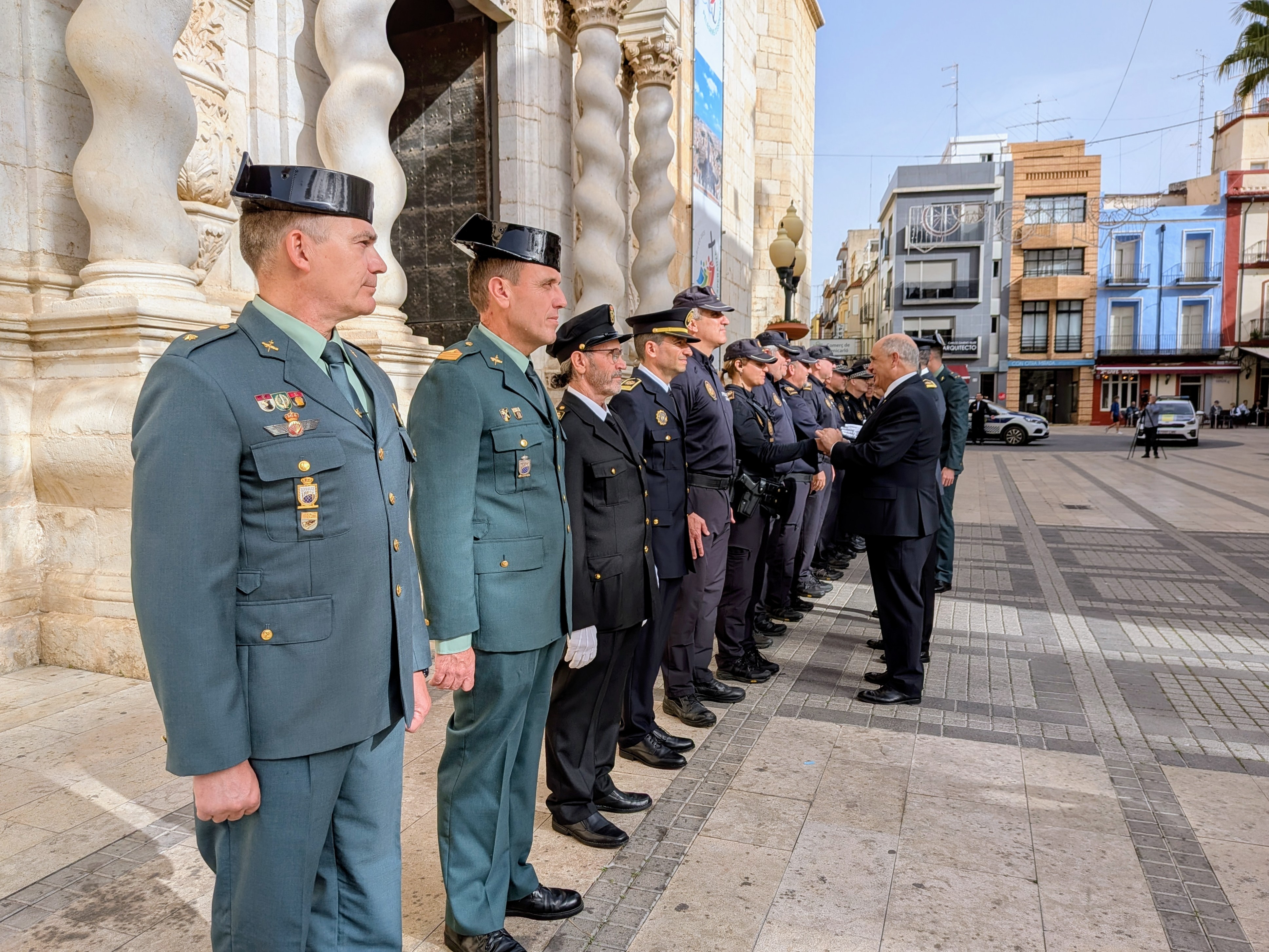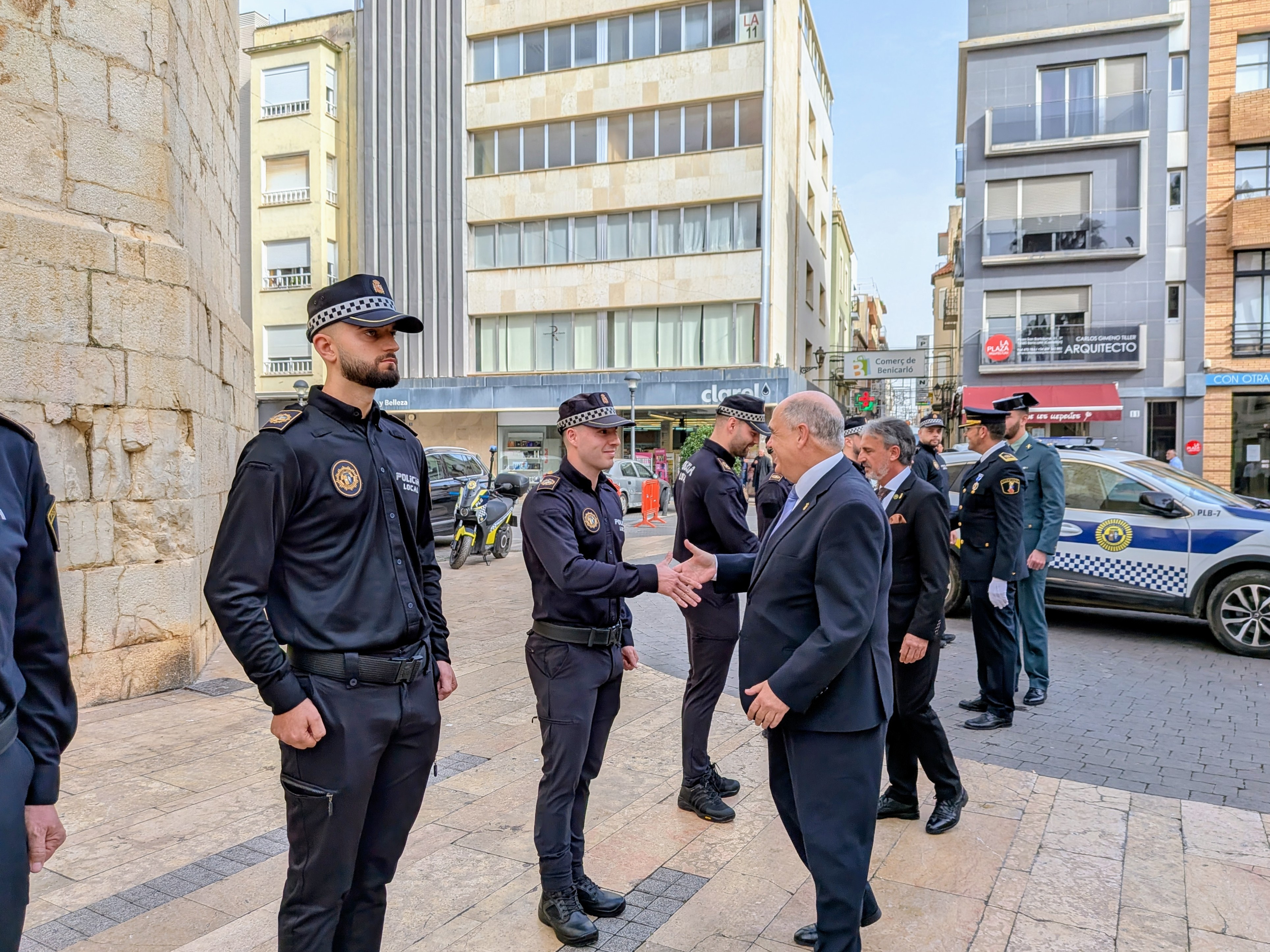 L'alcalde de Benicarló, Juanma Cerdá, i el regidor de Policia i Governació, Fabián Flos, han passat revista aquest matí al cos de la Policia Local de Benicarló amb motiu de la celebració de la festivitat del seu patró, Sant Miquel.