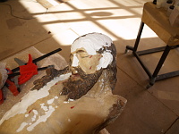 La restauració, realitzada per la Fundació Blasco de Alagón, ha descobert una imatge que estava amagada sota set capes de pintura i una de guix, que tenia afegits com part del cabell i que havia patit un important deteriorament al llarg dels anys.
