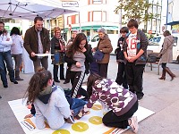 El Mercado de Benicarló ha servido de escenario para el inicio de la campaña "en valenciano" que la AVL ha puesto en marcha hoy y que tiene como eje principal la realización de diferentes acciones de difusión del valenciano a través de juegos dirigidos a toda la población. El público se ha ido acercando durante toda la mañana en el Mercado para participar en los diferentes juegos que se proponían, como una sopa de letras donde se habían de localizar hasta ocho con municipios valencianos o un twister, donde han participado un grupo de alumnos del colegio La Salle.